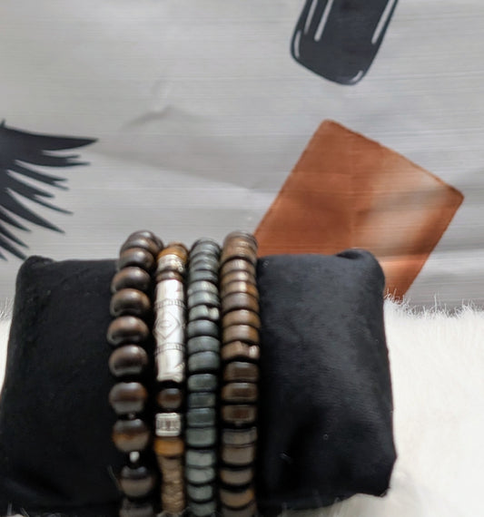 005 Vintage Style Wooden Bead Bracelet Set - Boho Tribal Stackable Set of 4