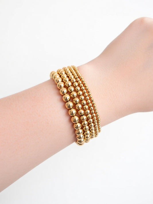 5 IN 1 Luxury Multi-Layer Beaded Bracelet Set for Women – Stretch Stackable Ball Bracelets in 14k Gold & Silver – Elegant Jewelry