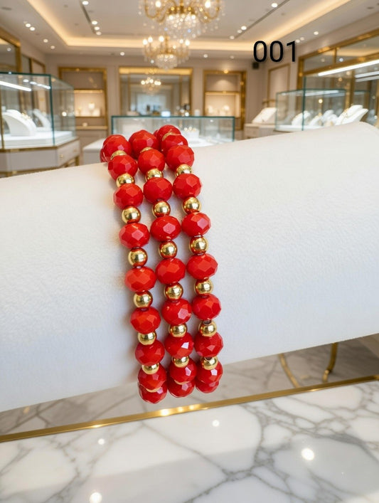 3 IN 1 Colorful Beaded Stretch Bracelet Set– Gold and Crystal Stackable Jewelry